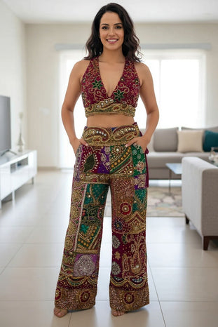 Step into the spotlight with this stunning handcrafted co-ord set, blending traditional Indian embroidery with a modern bohemian silhouette.