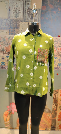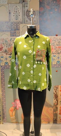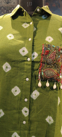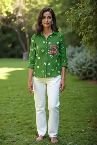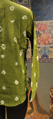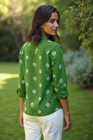 Step into effortless elegance with this Green Ikat Shirt, a perfect fusion of tradition and modern style. Designed in soft, breathable fabric, it features: