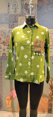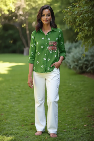 Pair it with white trousers, denim, or skirts to create a chic Indo-fusion look. Each shirt is uniquely handcrafted—a true celebration of Indian artisanship.