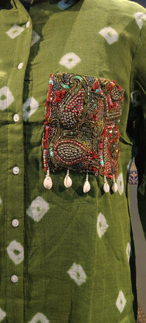 Intricately embellished pocket with beads, sequins & handcrafted embroidery.